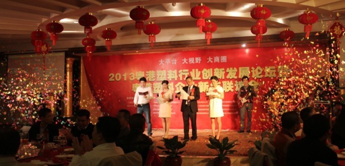 2013年1月18日,由广东省塑料工业协会、东莞市樟木头镇人民政府主办,广东省塑料工业协会创新经营服务中心、顺德区塑料商会、深圳市普拉司商务网络有限公司承办的主题为“大平台、大视野、大商圈---2013粤港塑料行业创新发展论坛暨粤港塑料企业新年联谊会”在东莞市樟木头镇花园酒店圆满举行,粤港两地300余位政府官员、协会商会、金融机构、塑料行业企业家等代表出席了此次行业盛会!